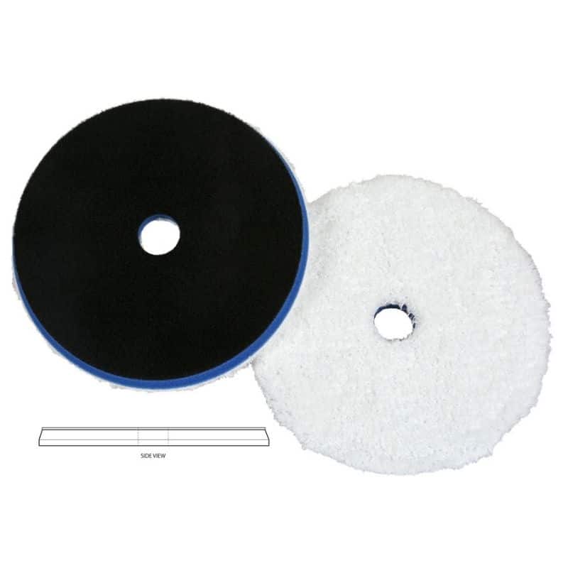 Boina de Microfibra Branca com interface azul para Corte Agressivo. Indicada para Máquina Roto Orbital livre com prato de 15mm a 21mm.